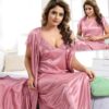 Jerry Women’s Satin Solid Nighty with Robe Set